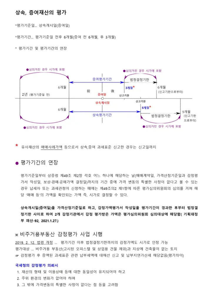 과거에는 납세자가 감정평가를 받아 오거나, 보충적 평가방법에 의한 평가액으로 신고시 평가기간 이내가 아니라면 과세관청이 재감정의뢰하는 경우가 거의 없었으나 아마도 보충적 평가방법에 의한 상증세 신고 이후 상속 물건의 양도에 따른 양도소득세 관련 크고 작은 문제들이 지속되자 2019.2.12. 법령을 개정하여 상속, 증여 모두 법령에 따른 법정결정기한 이내에서는 사무처리규정에 따라 적극적인 감정의뢰 실시 및 재산평가심의위원회 심의를 통해 확정된 가액으로 상증세를 결정할 수 있게 되었습니다.